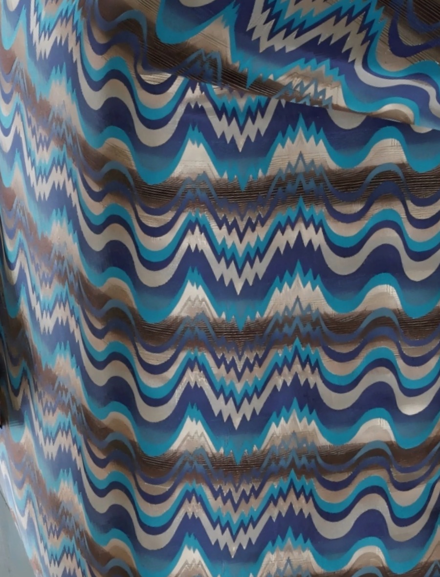 有如万花筒般的绚丽多彩,丝滑的面料手感,富有动感的图